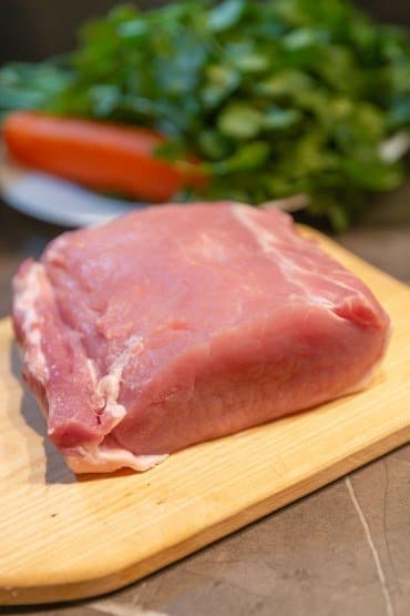 После того, как корочка схватилась, уменьшили температуру, накрыли сковородку крышкой и за несколько минут довели мясо до 73 °C внутри куска.
