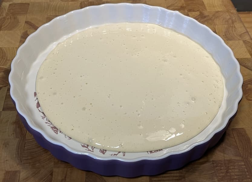 Тесто выложили в форму и равномерно распределили по ней.