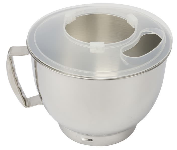 Для защиты от разбрызгивания при взбивании и смешивании ингредиентов производитель добавил пластиковую полупрозрачную крышку. В крышке также имеется отверстие для загрузки продуктов. Крепится крышка посредством трех силиконовых ограничителей внутри отверстия, надеваемого на откидывающуюся часть моторного блока.