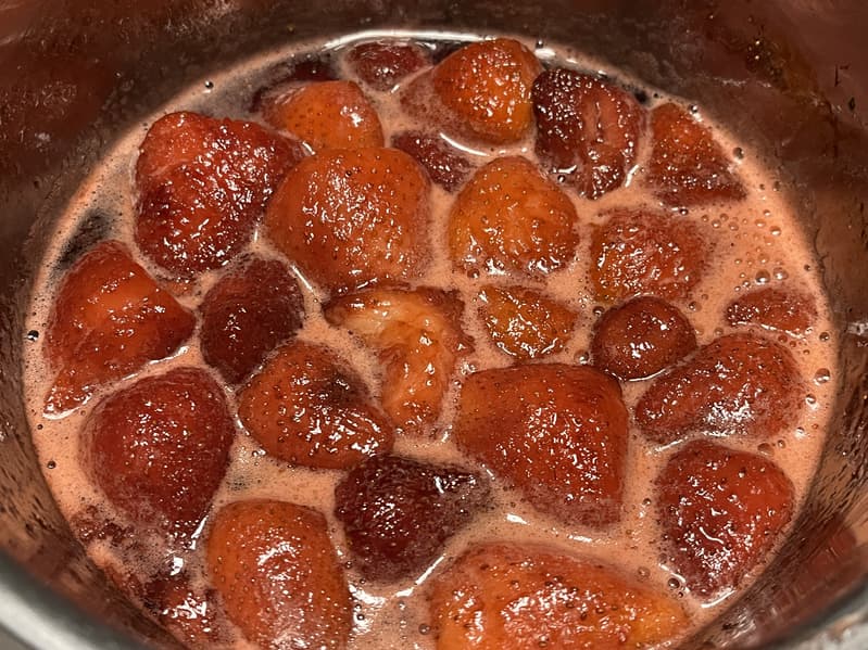 Готовую клубнику в сиропе мы оставили остывать.