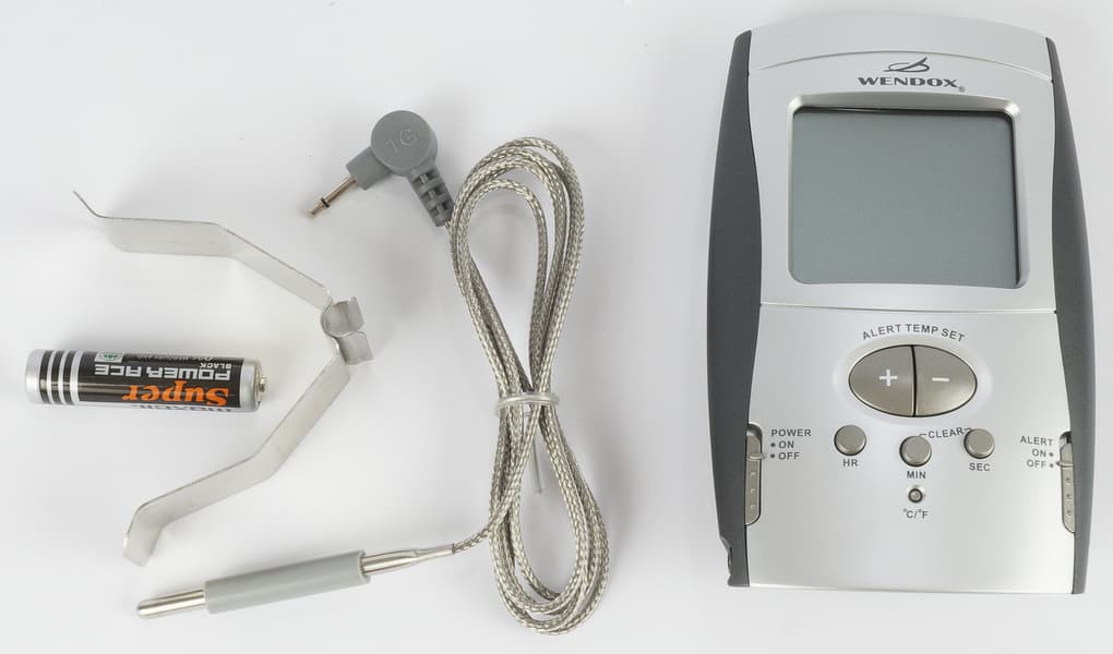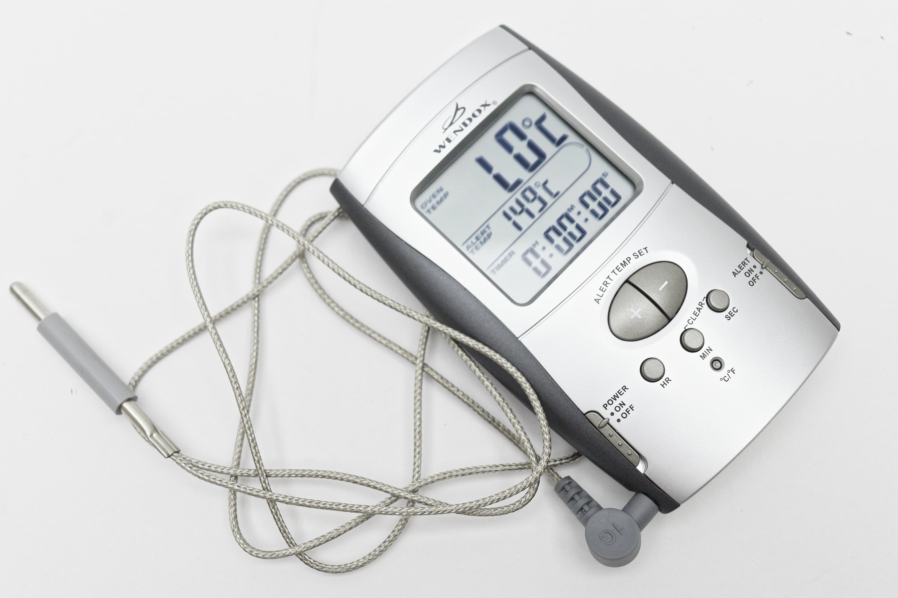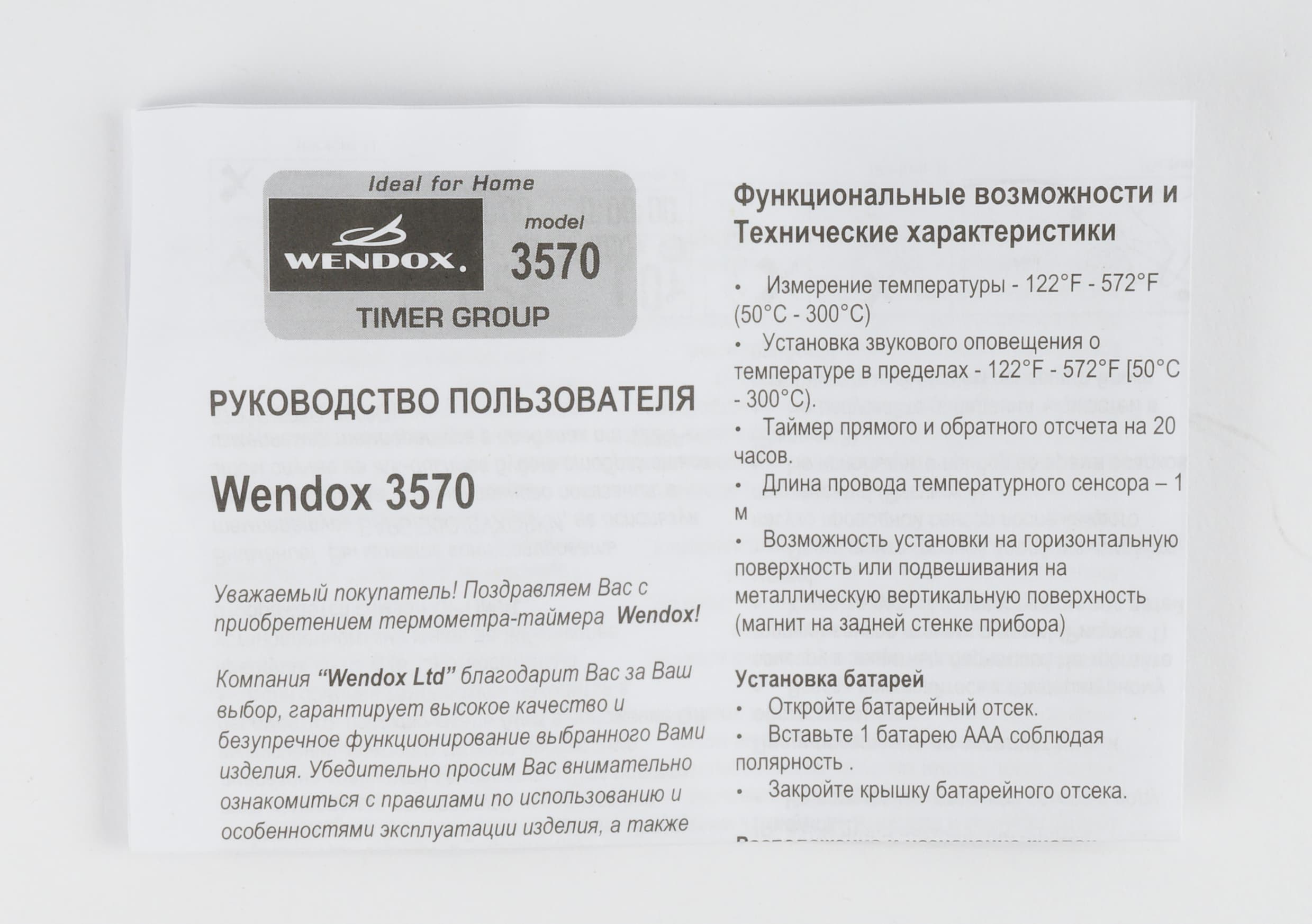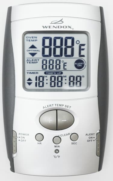 Wendox W3570-S — электронный цифровой высокотемпературный термометр с выносным сенсором. Термометр предназначен для определения температуры воздуха, причем вначале нам подумалось, что сфера его применения ограничена устройствами для приготовления барбекю — но думали мы так ровно до тех пор, пока не вспомнили про газовые духовки.
