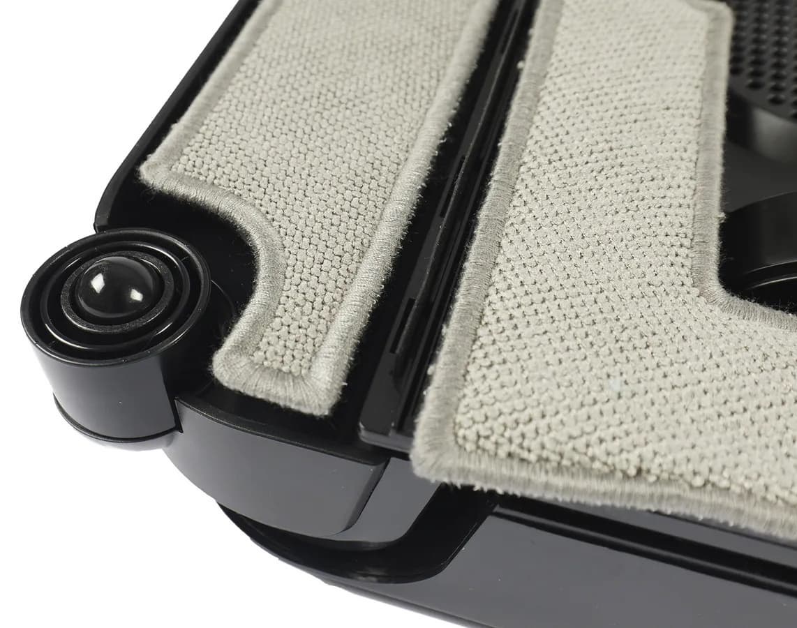 В таких моделях, в отличие от роторных, моющие салфетки неподвижны, а стекла протираются только за счет перемещений робота. Прибор держится на вертикальной или наклонной поверхности благодаря вакуумному насосу, создающему разрежение воздуха, а ползает по стеклу на резиновых лентах-«гусеницах» с роликами внутри. Их перемещения обеспечивают два мотора, поэтому робот может и поворачивать, и разворачиваться на месте. В комплект входят четыре моющие салфетки из микрофибры и моющее средство (но можно использовать любое другое для стекол).