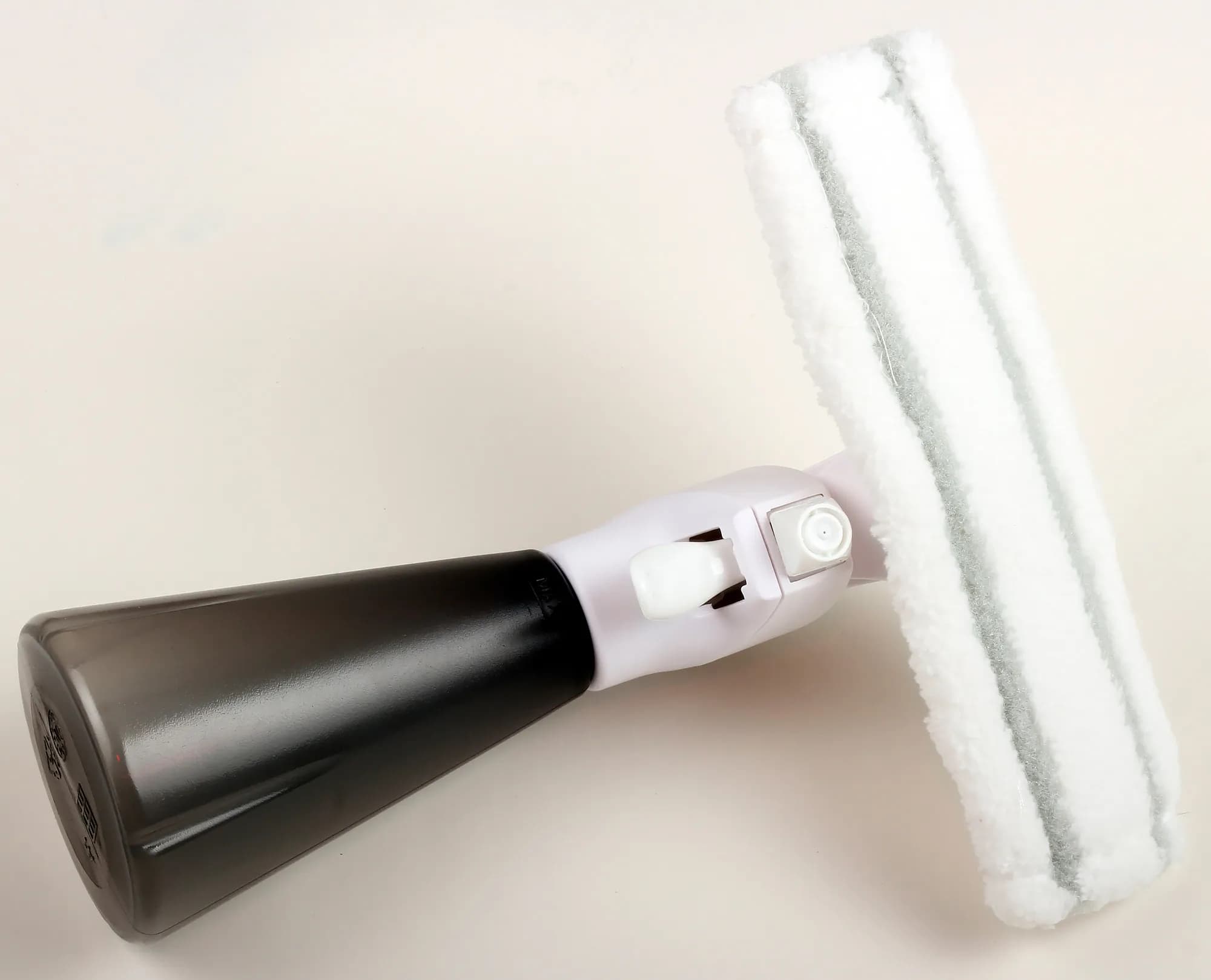Этот ручной стеклоочиститель мы тестировали почти пять лет назад, но он до сих пор продается и стоит относительно недорого для своей категории. Прибор состоит из двух независимых устройств: распылителя с чистящей щеткой из микрофибры и «пылесоса» для сбора грязной воды с очищаемых поверхностей.