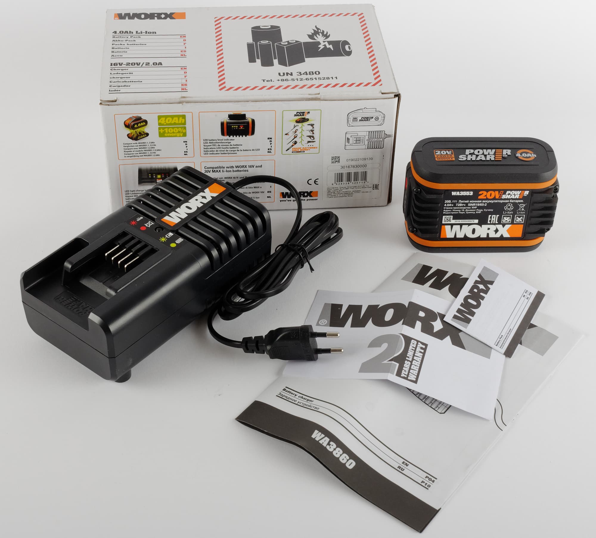 Worx WA3604: комплект из аккумулятора и зарядного устройства