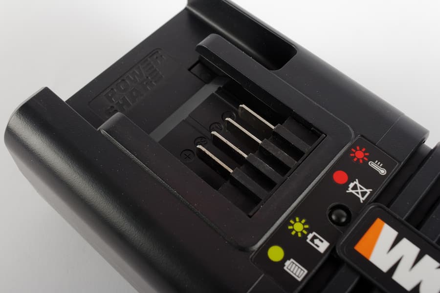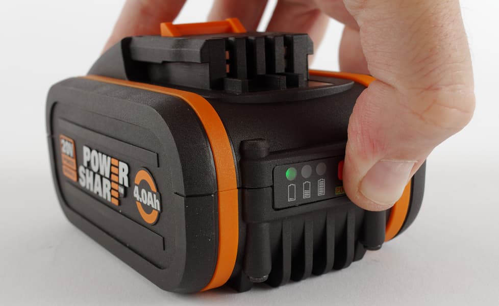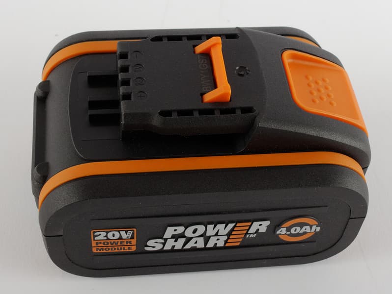 Технология PowerShare, которую использует Worx, подразумевает применение стандартных взаимозаменяемых литий-ионных аккумуляторов напряжением 20 В для всех типов инструментов и приборов.
