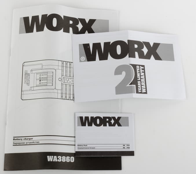 - Worx WA3604: комплект из аккумулятора и зарядного устройства