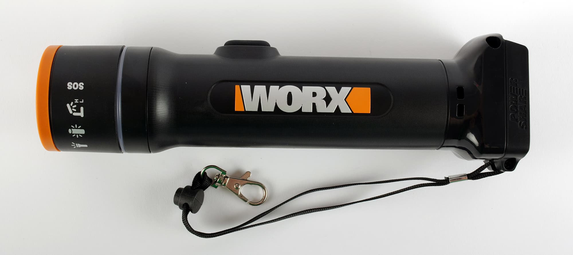 Перед нами — Worx WX027, который, работая от стандартной батареи PowerShare, служит ручным фонариком, светильником ненаправленного света, настольной лампой и ночником, а в случае необходимости способен подавать сигнал бедствия.