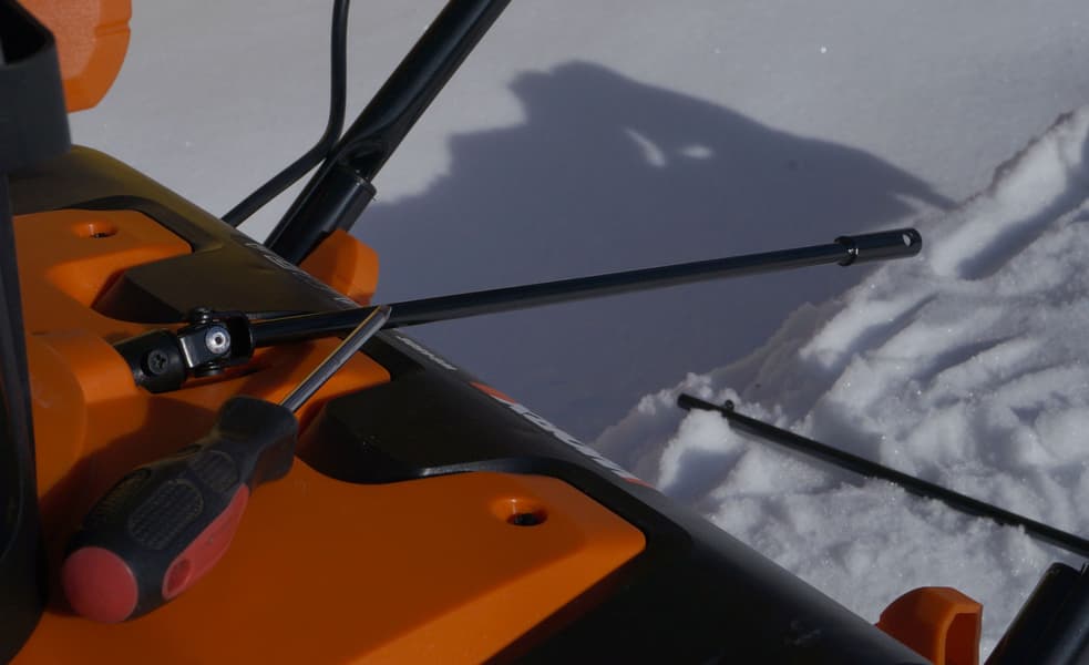Лишь в одном случае не обойтись без крестовой отвертки. Она потребуется при монтаже штанги, которая вращает выпускной желоб, изменяющий направление выброса снега.