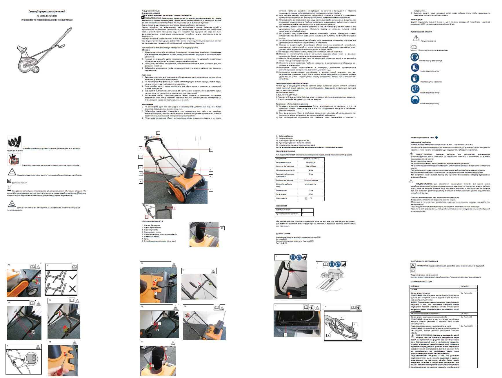 | Тип | электрический проводной снегоуборщик, скребковый шнековый с вертикальным выбросом |