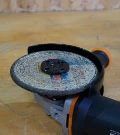 Вот и наш заключительный тест, который с некоторых пор обрел второй смысл: длительное (относительно) шлифование металлической поверхности в целях снять старую краску и ржавчину. Заодно выясним время, которое проработает болгарка на одном полностью заряженном аккумуляторе. Чтобы работа не окончилась слишком быстро, мы подключили к инструменту самую емкую из имеющихся у нас батарей: 4 А·ч.