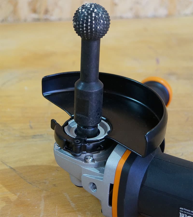 Для крепления насадок в болгарке используется стандартный шпиндель с резьбой M14. Для фиксации насадки прилагается гайка, которая навинчивается на резьбу шпинделя и затягивается ключом.