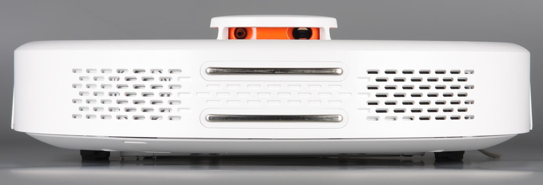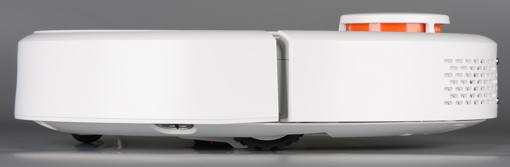 Скос от края к днищу помогает преодолевать препятствия, а некоторая угловатость сверху и слегка выраженный бортик на бампере снижают вероятность того, что пылесос будет застревать под препятствиями с небольшим просветом.