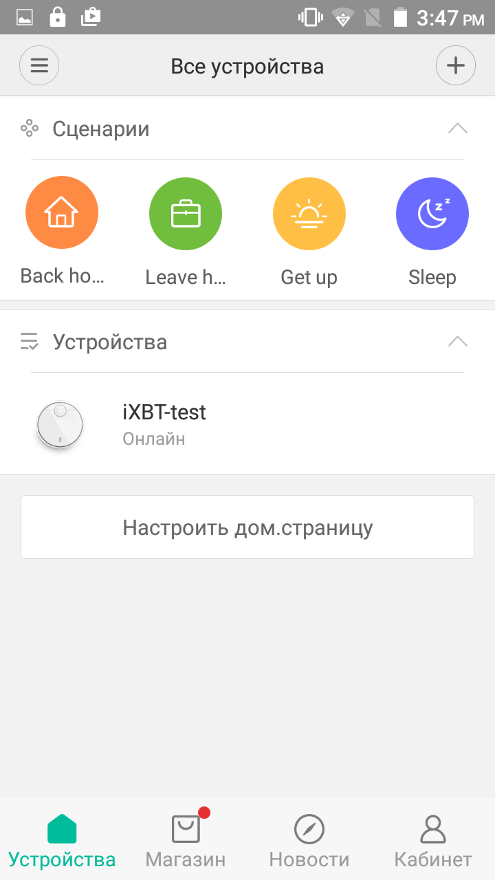 Запустив приложение первый раз, нужно установить связь с роботом, который должен быть в радиусе действия Wi-Fi-сети (и, видимо, только 2,4 ГГц) с выходом в большую Сеть, так как для управления роботом привлекается глобальный облачный сервис. С одной стороны, это хорошо, так как контролировать робота можно отовсюду, где есть подключение к Сети, с другой — плохо, так как если нет доступа в Сеть или нет хотя бы связи с облачным сервисом (а это случается постоянно), то нет и доступа к роботу, даже если он и мобильное устройство находятся в одной локальной сети. С нашей точки зрения, самая полезная функция — это отображение карты помещения, составленной роботом, и траектории движения робота на ней. Можно контролировать, как робот убирает, и при необходимости вносить коррективы в расстановку мебели и т. д. с целью повышения качества уборки. На главной страницы плагина отображается состояние робота, карта, убранная площадь и время для последней выполненной уборки, а также текущий заряд батареи. Внизу есть кнопочки возврата на базу, запуска уборки и переключения мощности вентилятора.
