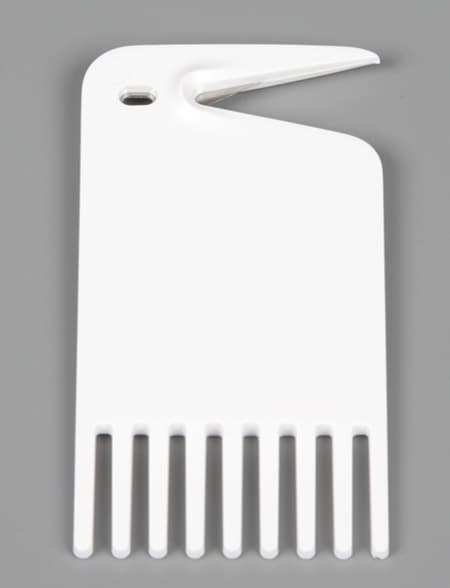 В комплект поставки входит специальный инструмент с гребенкой и лезвием в загогулине. С его помощью можно срезать намотавшиеся волосы и вычесывать щетку.