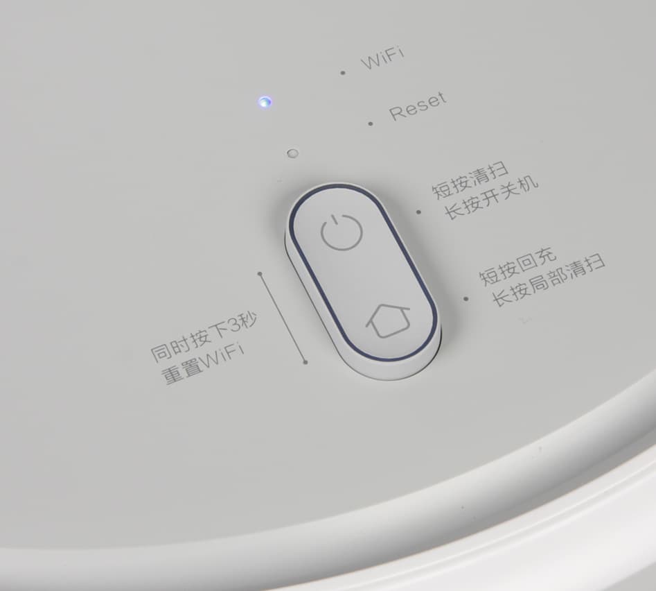 О своем состоянии пылесос информирует с помощью светодиодного индикатора — ободка вокруг кнопки-качалки, — а также проговаривая слова, фразы и даже длинные предложения на чистом китайском языке. При желании это голосовое оповещение можно отключить, но только вместе с возможностью запуска на уборку.