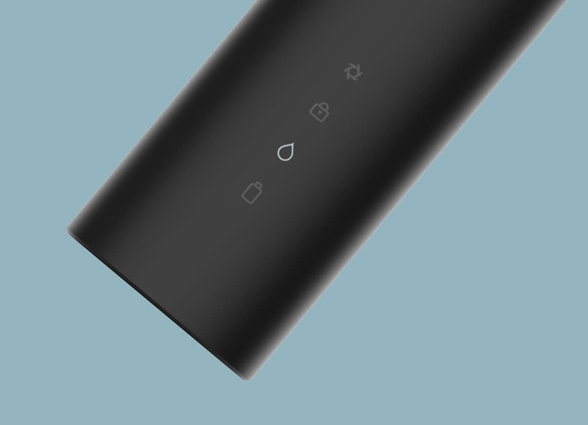 Индикаторов четыре. Самый верхний загорается при включении «турборежима», иконка замочка подсвечивается, если нажать кнопку при включенной блокировке, капелька сообщает о том, что пора почистить/помыть бритвенную головку, а иконка батарейки мигает белым во время подзарядки или красным, если бритву пора зарядить.