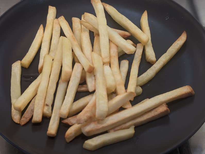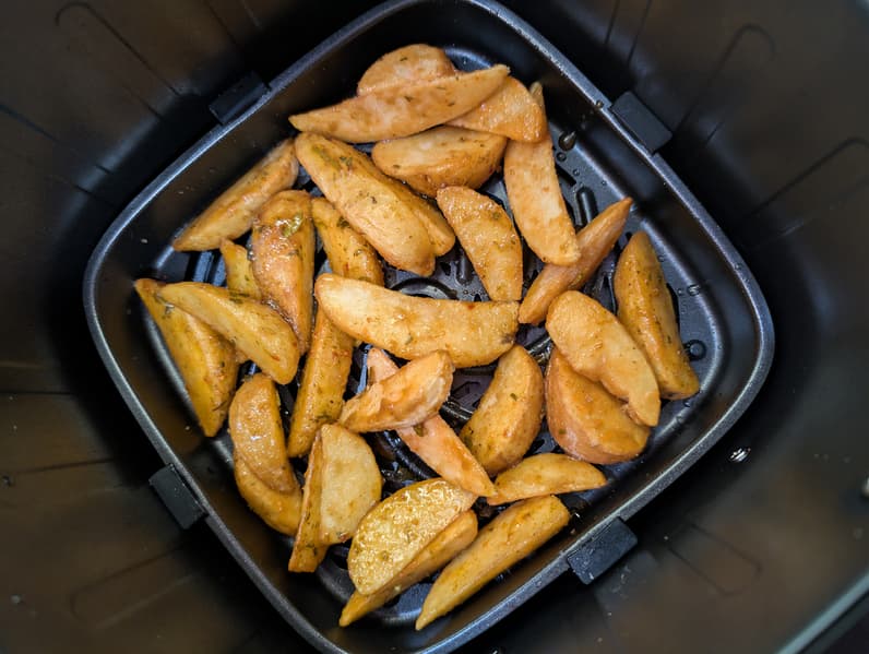 Результат нас полностью удовлетворил: картофель приобрел хрусткую корочку, получился в меру поджаристым и нежирным.