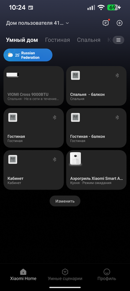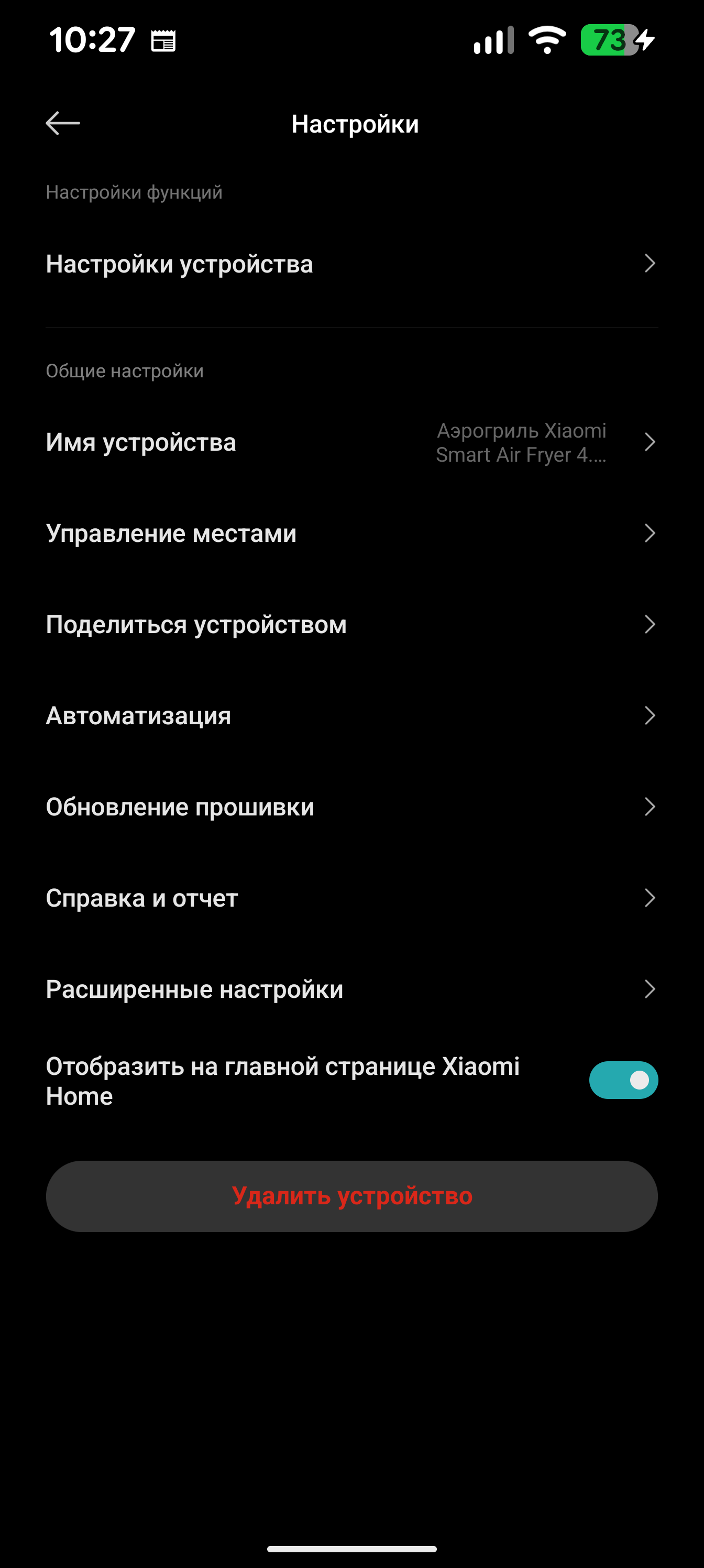 После установки мы видим аэрогриль на главной странице нашего умного дома.