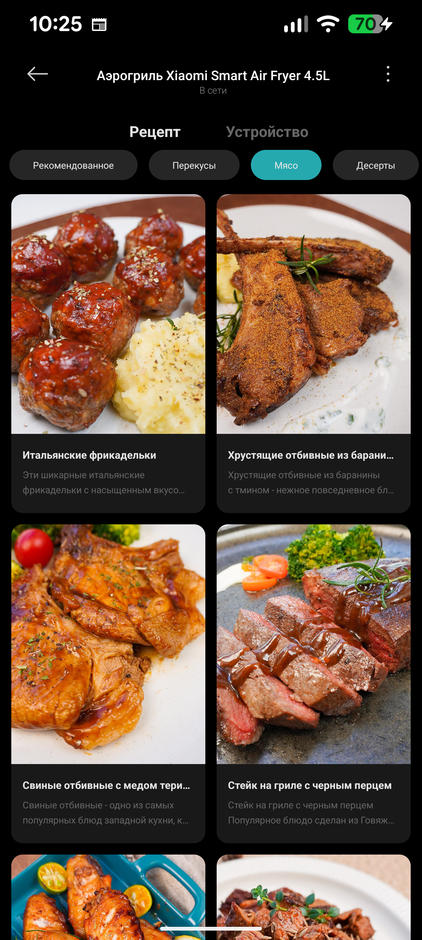 Знакомясь с аэрогрилем, основное внимание мы уделяли ручному режиму, но не упустили возможности попробовать и рецепты из мобильного приложения.