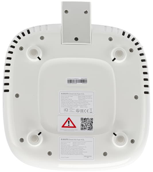 Компоновка аэрогриля Xiaomi Smart MAF14 вполне традиционна для современных устройств этого класса: корпус прибора имеет форму параллелепипеда со скругленными углами, в верхней части размещается нагревательный элемент, а нижнюю половину объема занимает чаша с Г-образной ручкой.