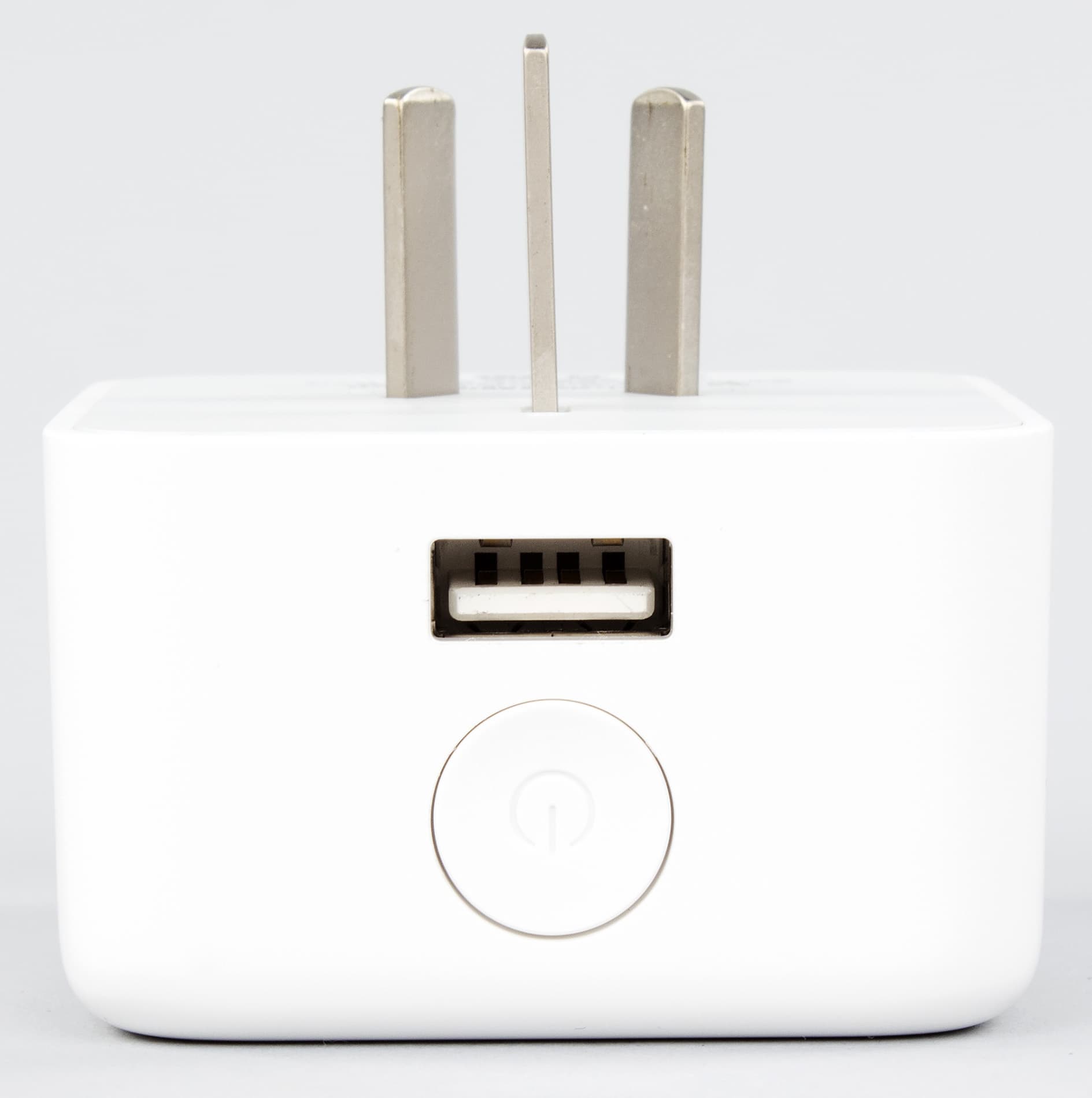 На верхнем торце корпуса расположен порт USB для питания смартфонов и других мобильных устройств. Рядом с ним находится единственная кнопка управления устройством. Она используется для оперативного включения и выключения основной нагрузки, а также для сброса настроек и подключения к новой беспроводной сети.