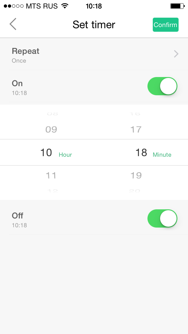 Кроме оперативного включения и выключения двух типов нагрузок через программу, поддерживается и работа с таймерами. Пользователь может запрограммировать несколько расписаний независимо для выходов 220 В и 5 В, в каждом из которых указываются время включения, время выключения и набор дней недели. Заметим, что расписание работает даже без запущенной на смартфоне программы.