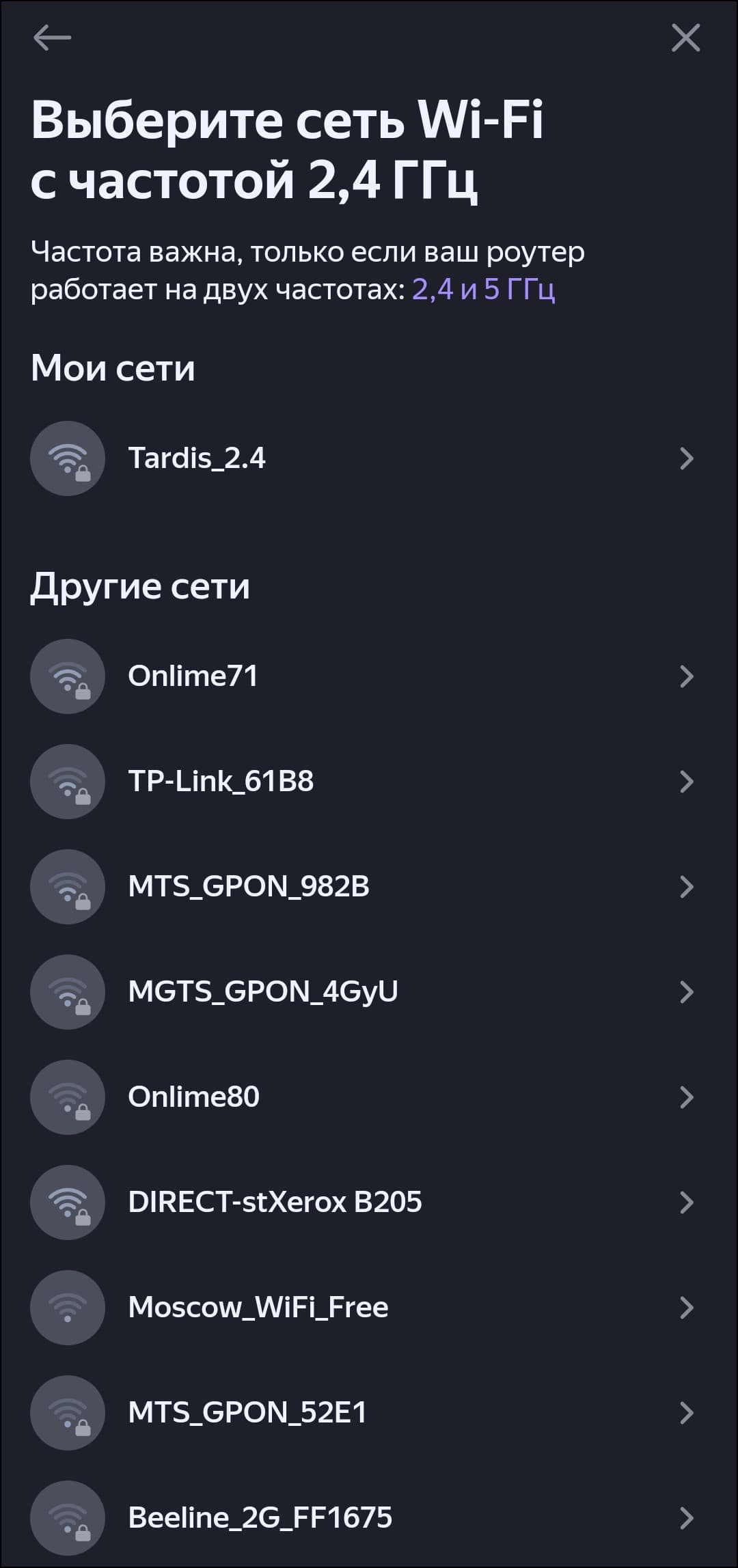 Если этого не произошло, открываем приложение, идем на страницу устройства с возможностью подключения Matter over Wi-Fi, в нашем случае — «Яндекс Станции Мини 3». Запускаем сопряжение, выбираем сеть Wi-Fi, если ранее она уже использовалась, пароль добавляется автоматически.