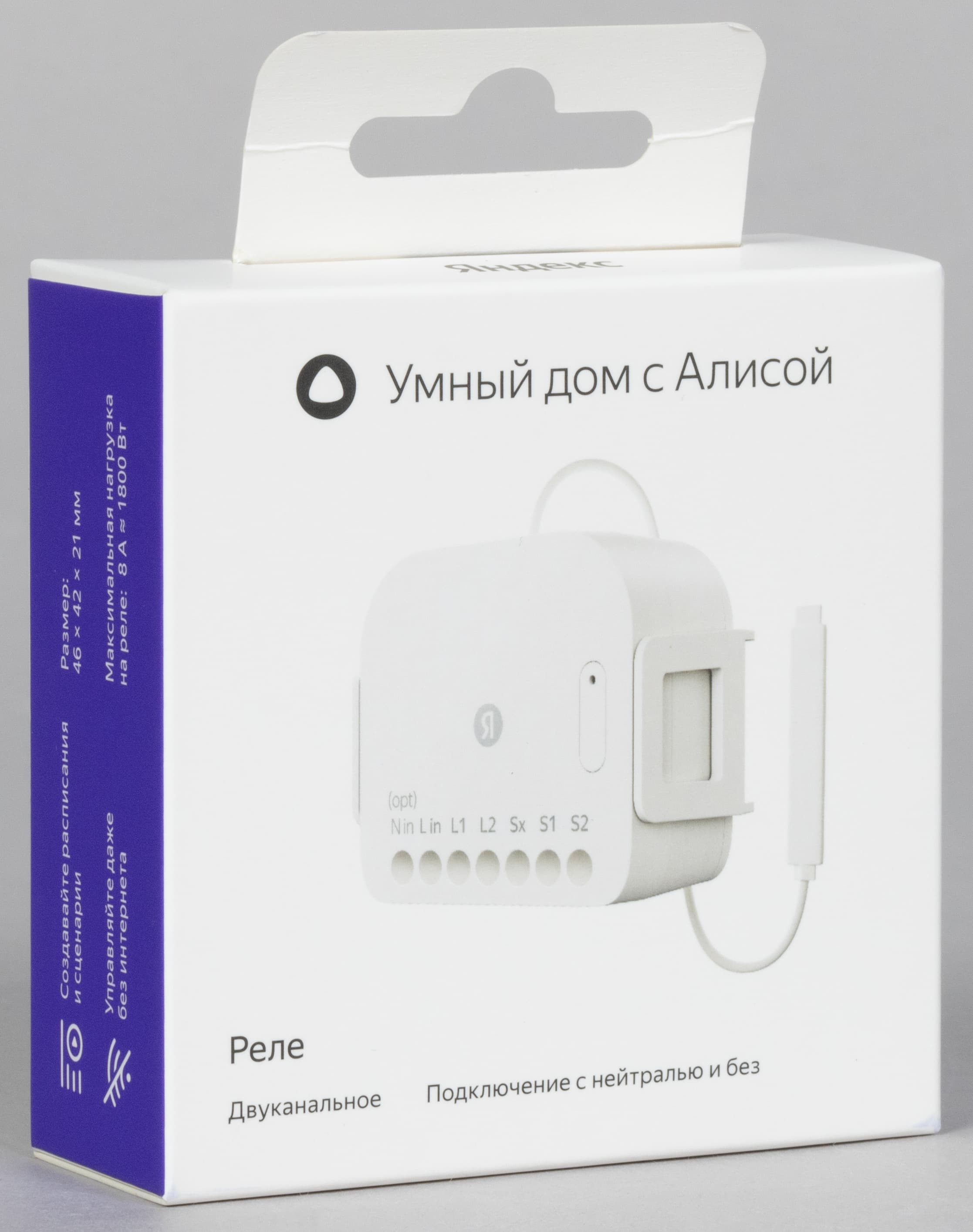 Бывает, что пользователь не готов менять выключатели. Например, так может произойти, если оформление рамки и клавиши тщательно подбиралось под интерьер. В таком случае «Яндекс» предлагает сделать «умным» обычный выключатель с помощью реле. И это даже удается осуществить, правда с парой оговорок. Во-первых, устройство хоть и рассчитано на монтаж в подрозетник позади выключателя, но еще должно туда влезть. В целом, всё может получиться, но вероятны нюансы — количество свободного пространства в подрозетнике может варьироваться, да и размеры внутренней части обычного выключателя могут быть разными.