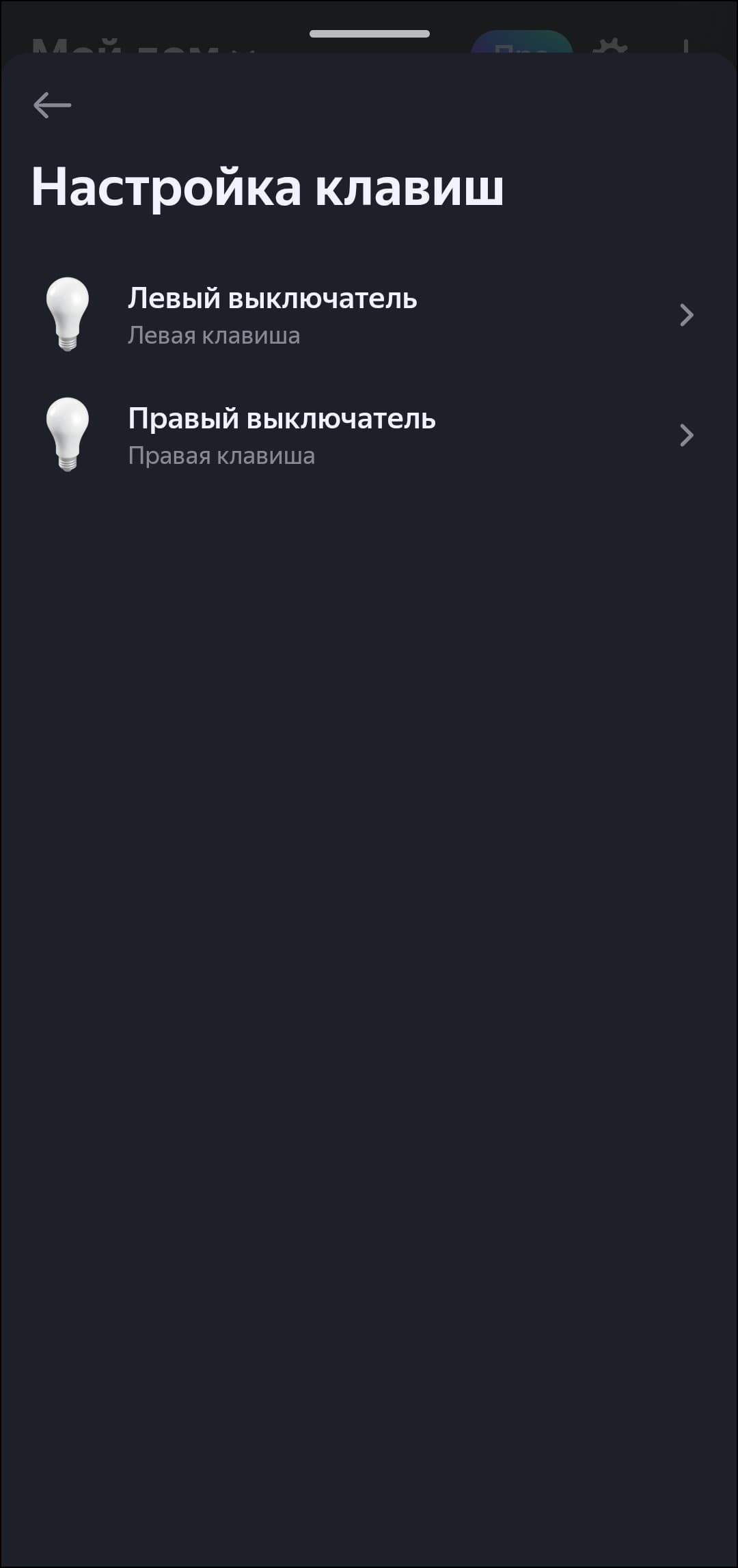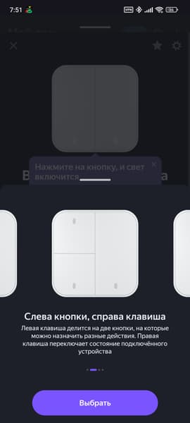 Сразу после подключения система предлагает варианты работы выключателя, каждая из клавиш может работать как две умные кнопки, либо как управляющий нагрузкой выключатель.
