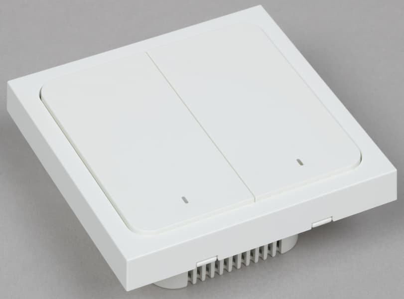 Базируются выключатели на уже знакомой нам SoC Telink TLSR8258, для примера покажем двухклавишный — оснащенный четырьмя кнопками.