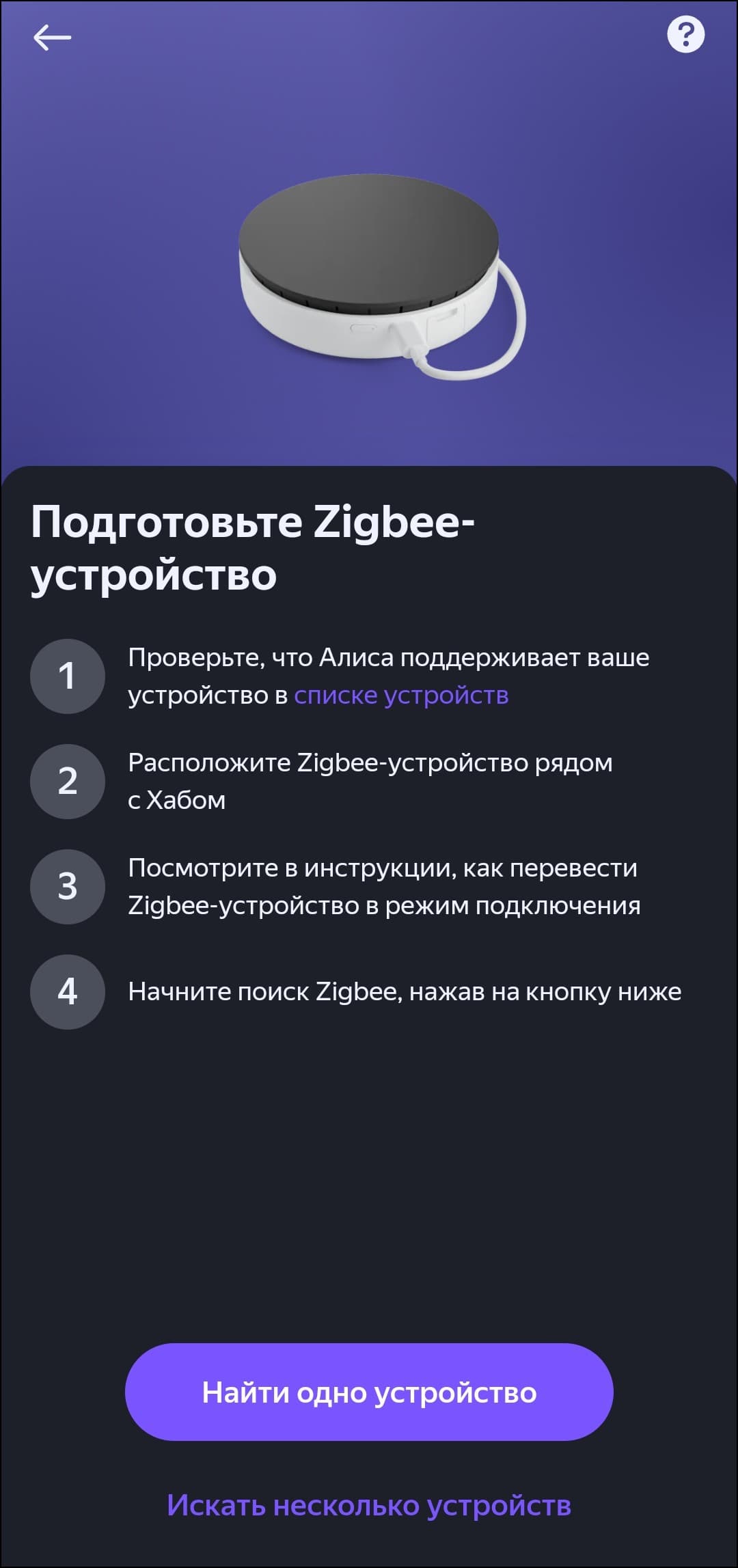Ну и раз у нас тут «потенциально универсальный» Zigbee, очень любопытно было попробовать добавить выключатель в экосистему умного дома другого производителя. Под рукой оказалась оснащенная Zigbee-хабом SberBoom Home, ею мы и воспользовались. К сожалению, ничего не получилось — после нескольких попыток выключатель так и не был даже обнаружен.