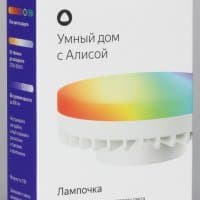 YNDX-00556 с цоколем GX53 имеет стандартную форму и размеры, максимальный световой поток — 806 лм. QR-код для подключения нанесен на заднюю часть корпуса рядом со служебной информацией.