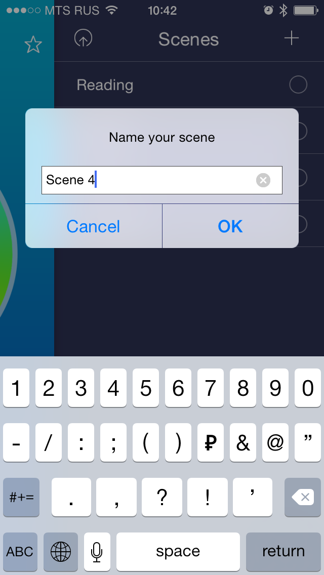 Дополнительно предусмотрено использование сцен, которые являются просто набором заданных заранее установок без привязки к расписанию или таймерам. При желании, можно добавить и собственные записи — необходимо сначала включить лампу требуемым образом, а потом в меню сцен нажать значок «+». Возможности редактирования сцен нет. Так что в этом случае придется удалять сцену и программировать заново.