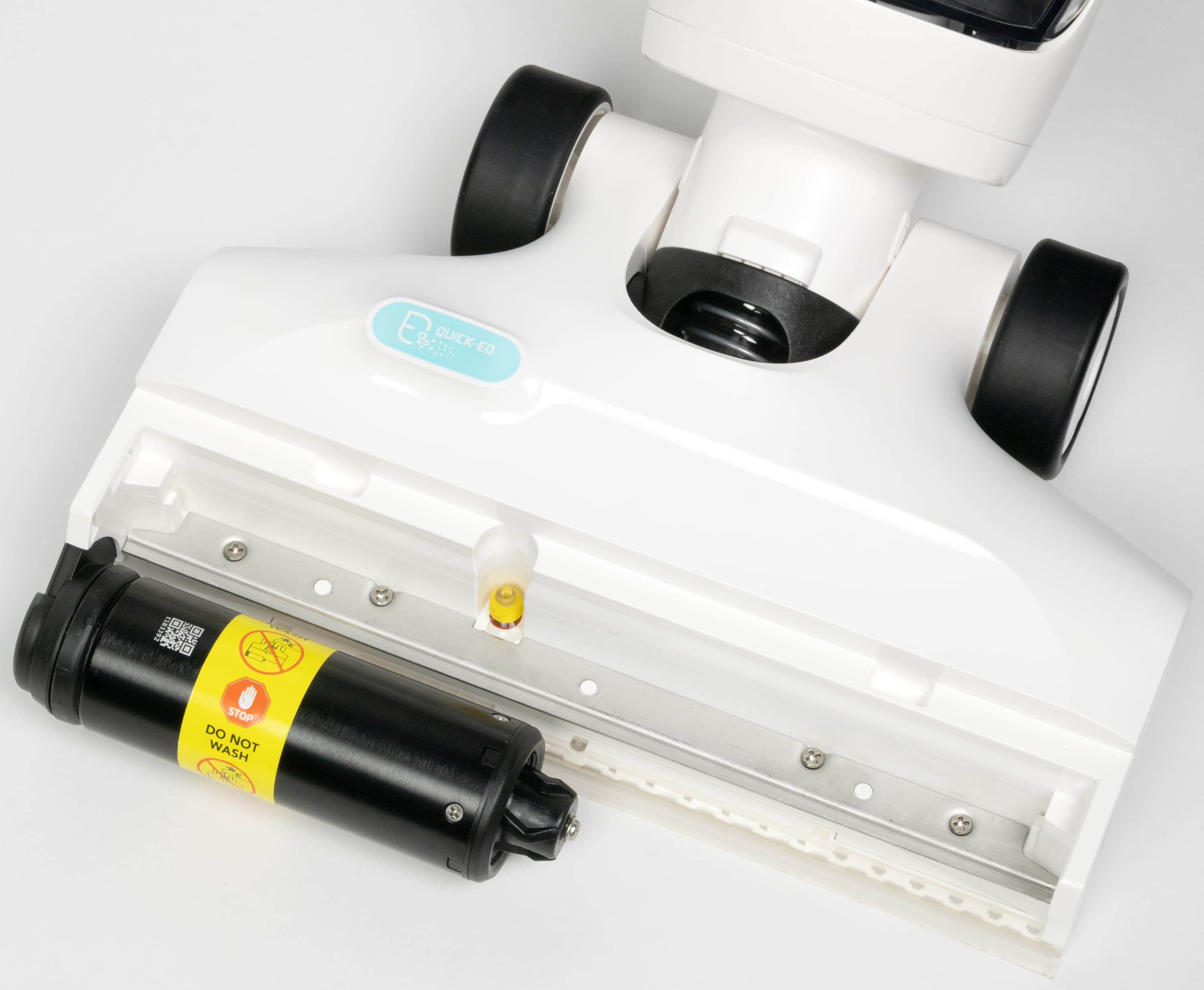 Четвертая программа — «Ультра» — для влажной уборки с одновременной дезинфекцией поверхности. В этом сценарии пылесос увлажняет ротор водой, прошедшей обеззараживания с помощью встроенного электролизера. В отличие от уже знакомых нам моделей, электрический обеззараживатель в Yoniev U7s встроен не в резервуар для воды, а прямо в электрощетку. При работе он, к сожалению, никак себя не проявляет, и мы не смогли оценить эффективность его работы.