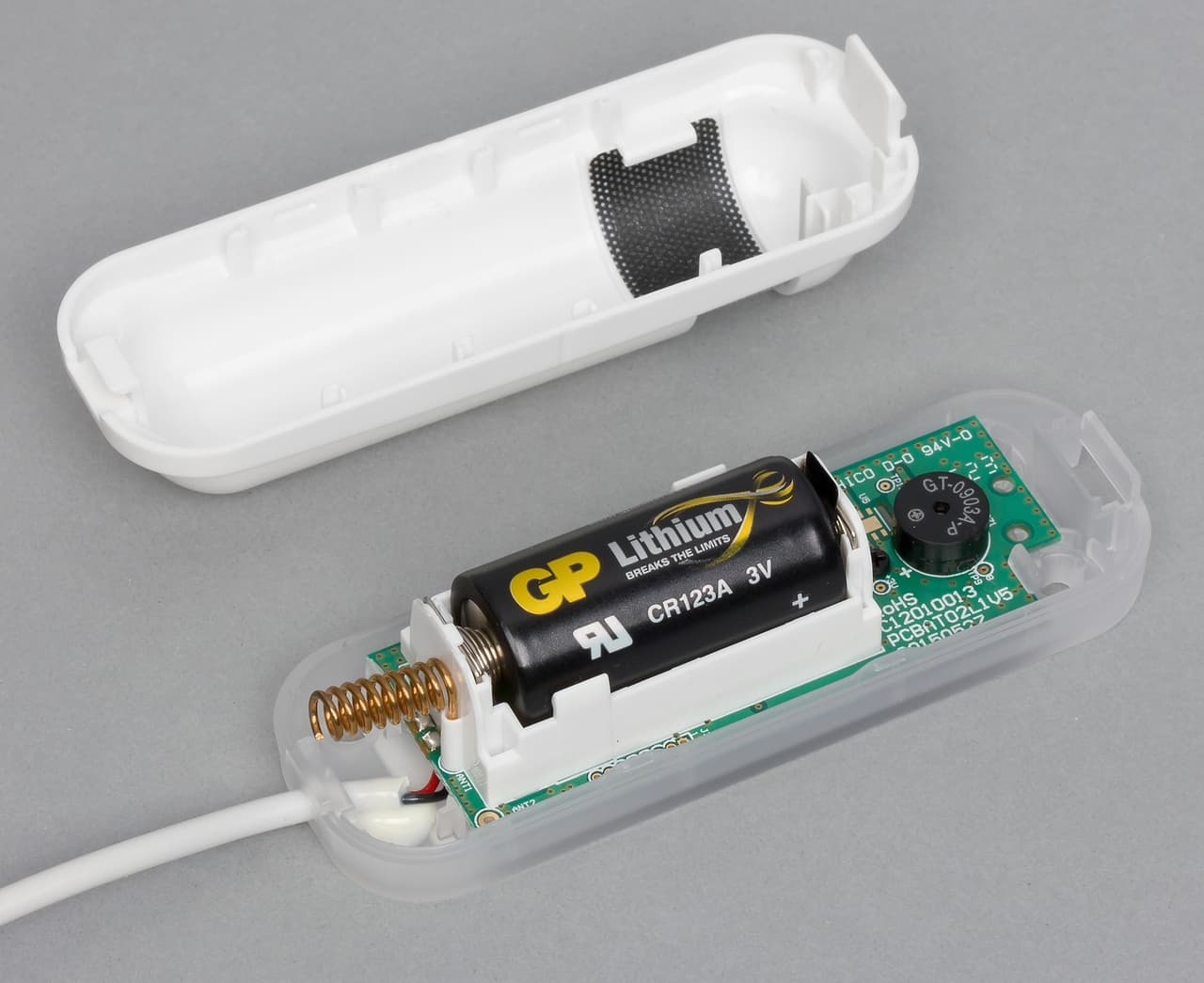 Компания предусмотрела два варианта питания устройства, так что вы сможете выбрать подходящий под ваши требования. Первый — два элемента формата CR123A, достаточно часто используемых в этом типе оборудования. Прогнозируемое время работы на них — два года. Конечно, реализовано информирование контроллера о состоянии батарей. Заметим, что датчик будет работать и от одной батареи, но менять ее нужно будет чаще. Срок службы зависит от многих факторов и настроек датчика, но в целом цифра вполне реальная.