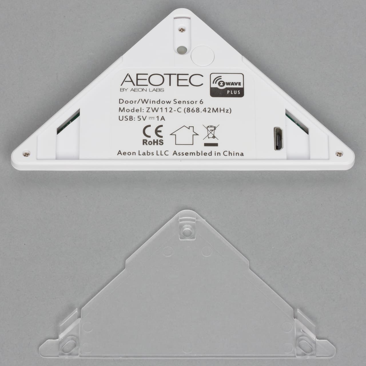 Основной блок представляет собой равнобедренный прямоугольный треугольник с катетами около 72 мм и толщиной 9 мм. Корпус изготовлен из белого матового пластика. Производитель отдельно отмечает, что датчик можно покрасить в цвет двери для менее заметного размещения.