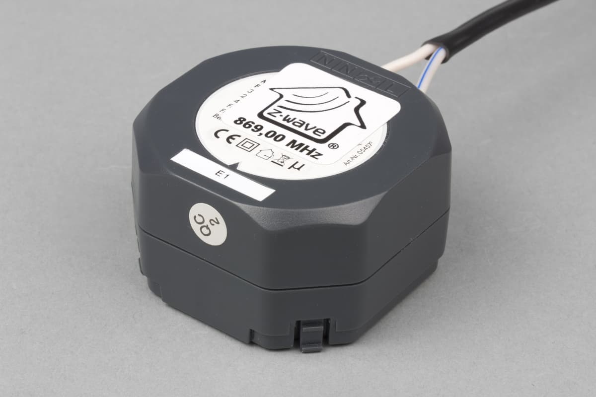 На боковой стороне есть кнопка для включения в сеть/исключения из сети и локального включения/выключения. Питание осуществляется от сети. Устройство может использоваться и для мониторинга энергопотребления, поскольку способно отправлять информацию о нем на центральный контроллер сети.