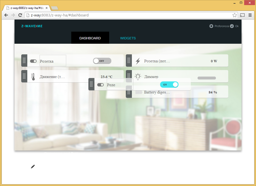 Относительно недавно в системе появился «Z-Way Home Automation UI», который является более дружелюбным к неподготовленному пользователю и позволяет использовать виджеты и скрипты для программирования работы системы. Познакомимся с ним подробнее. Текущая версия данного интерфейса есть только на английском языке.