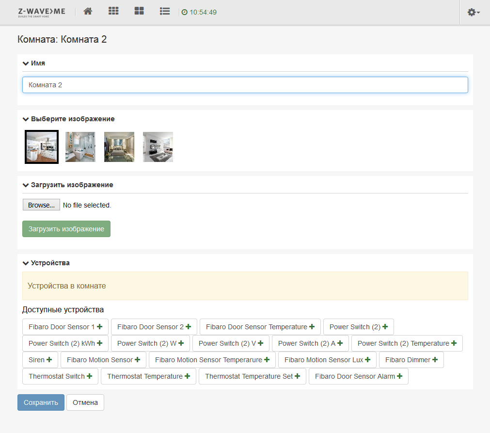 При создании комнат выбирается их имя и изображение, а также сразу можно указать устройства, которые расположены в этом помещении или управляют оборудованием в нем.