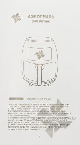 Мужественно продравшись через язык машинного перевода, в самом начале инструкции мы обнаружили описание порядка подготовки аэрогриля к работе и осуществили эту подготовку согласно написанному.