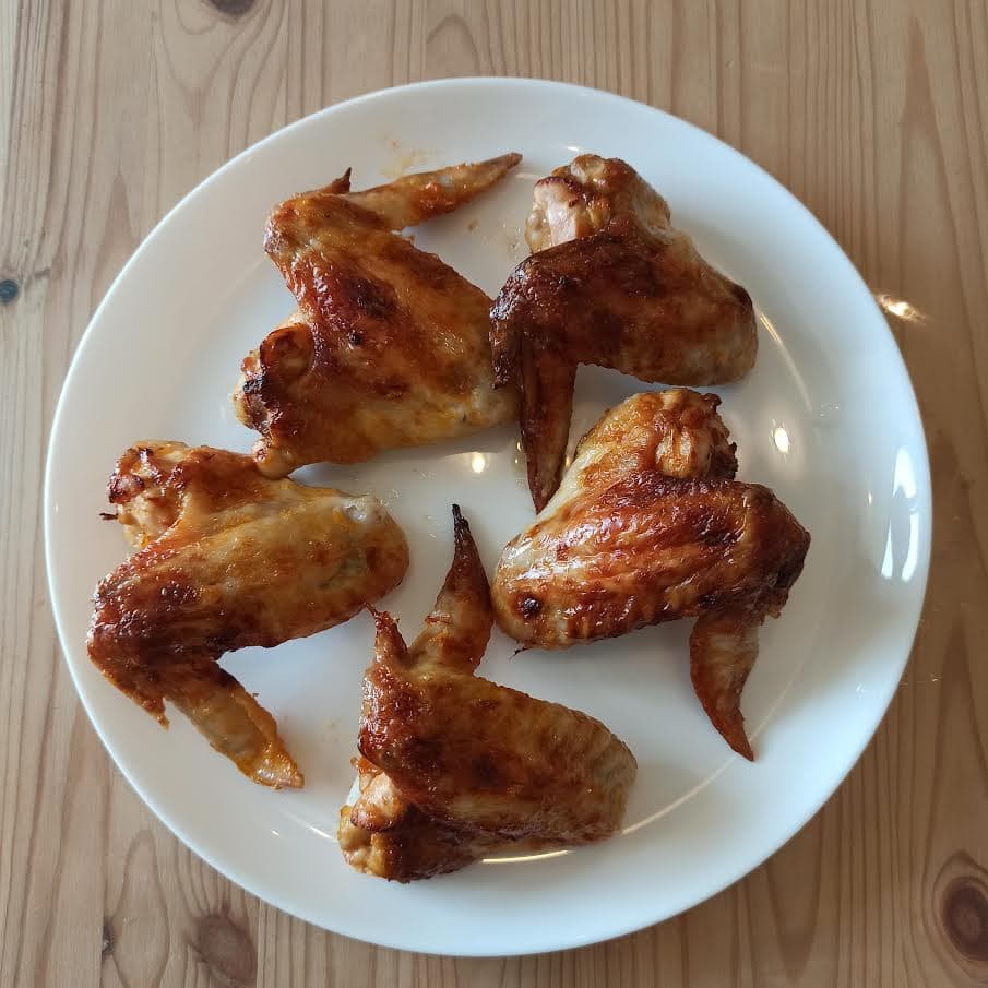 Тему курицы мы решили продолжить в следующем тесте. На этот раз мы взяли крылышки. Замариновав их предварительно в майонезе и кетчупе, выложили на решетку и готовили в режиме для курицы. Раза 3 в ходе приготовления перевернули.