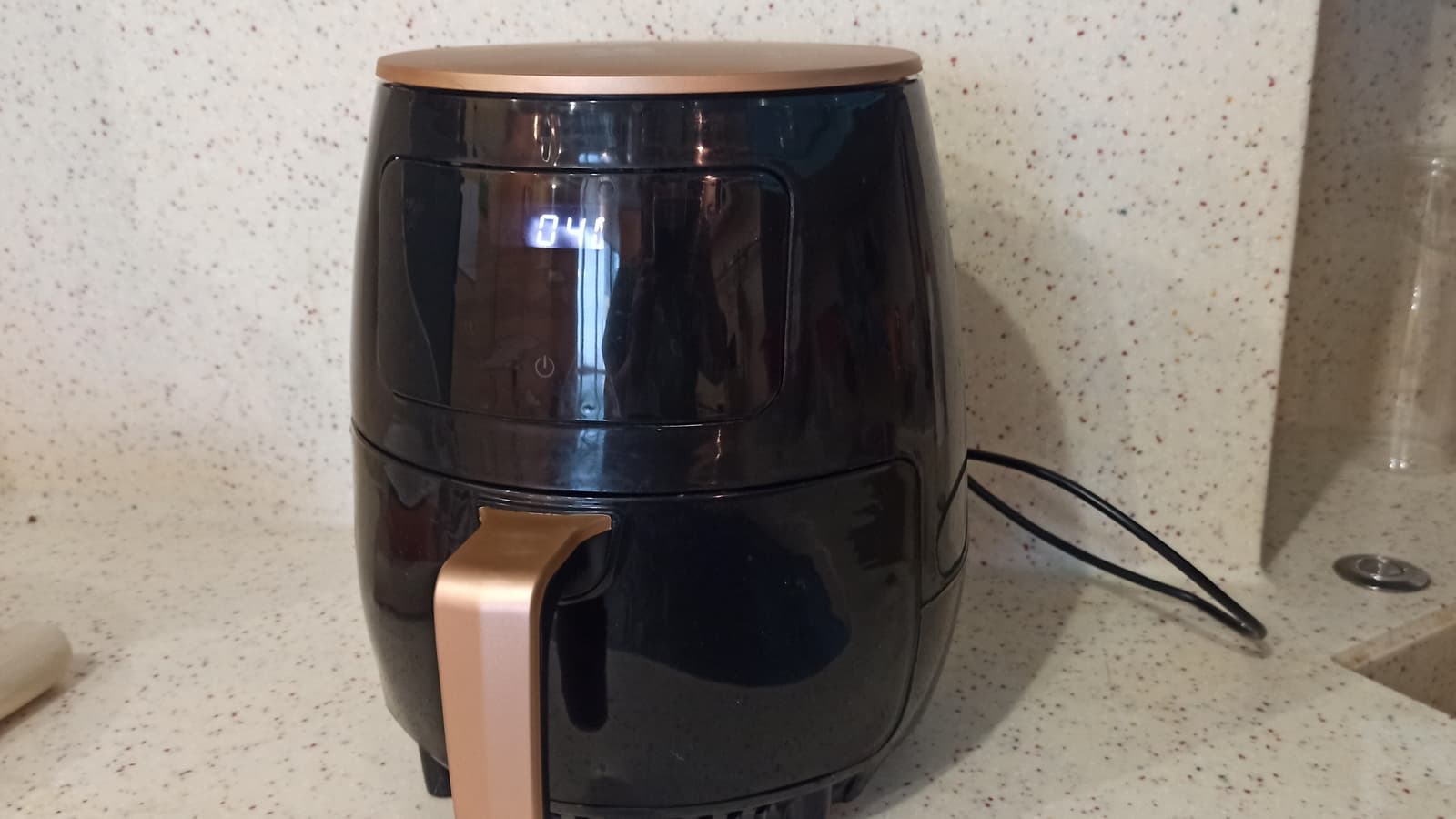 Используя мягкую губку и моющее средство в виде геля, мы промыли поверхность чаши и решетку, затем вытерли влажной тряпкой дно и стенки внутри корпуса. После этого, как требовала инструкция, мы установили пустую чашу в аэрогриль и включили на 15 минут при температуре 180 °C. Затем положили в чашу ломтик лимона с кожурой и запекали его также в течение 15 минут при температуре 180 °C. Этот шаг производитель рекомендовал, дабы устранить запах аэрофритюрницы, который действительно вначале ощущался.