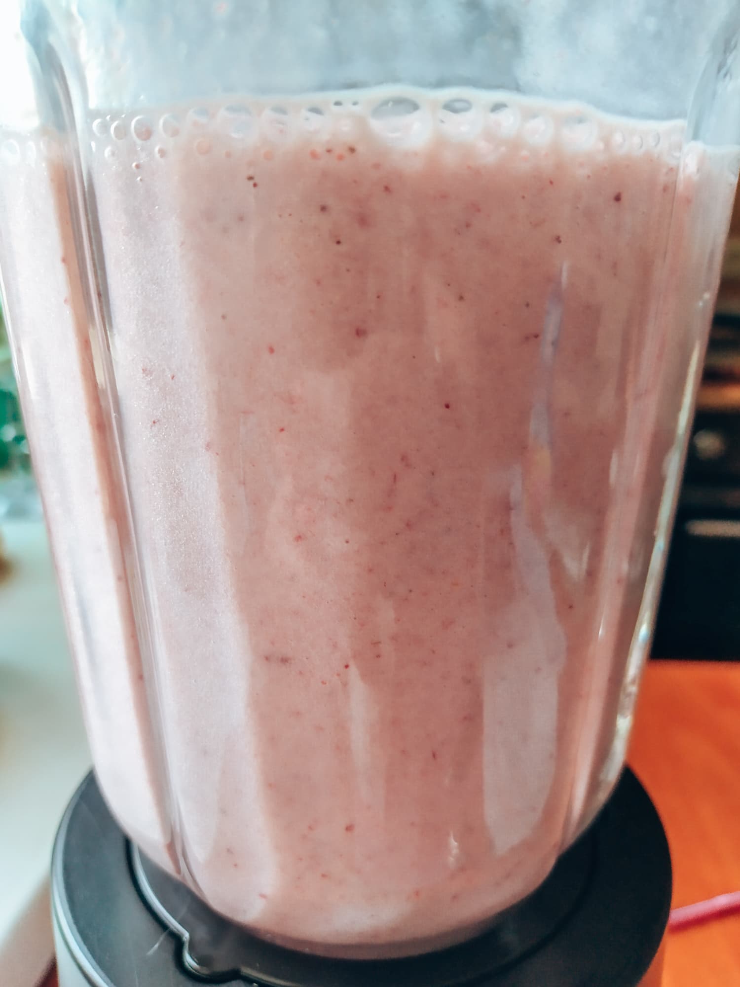 По консистенции похоже на йогурт, встречаются клубничные семечки. Невооруженным глазом видны мельчайшие ошметки клубники. Замороженные ягоды отлично измельчены, а главное — это очень вкусно и куда полезнее шейка из фастфуд-ресторана.