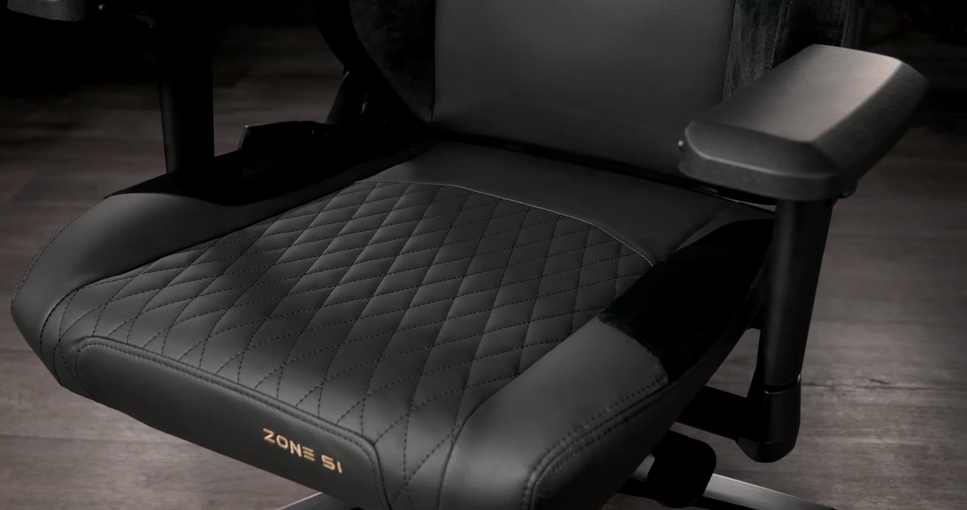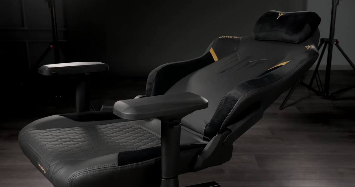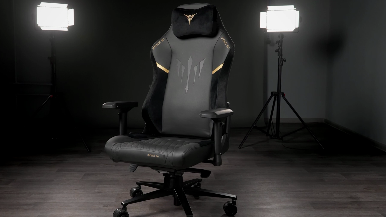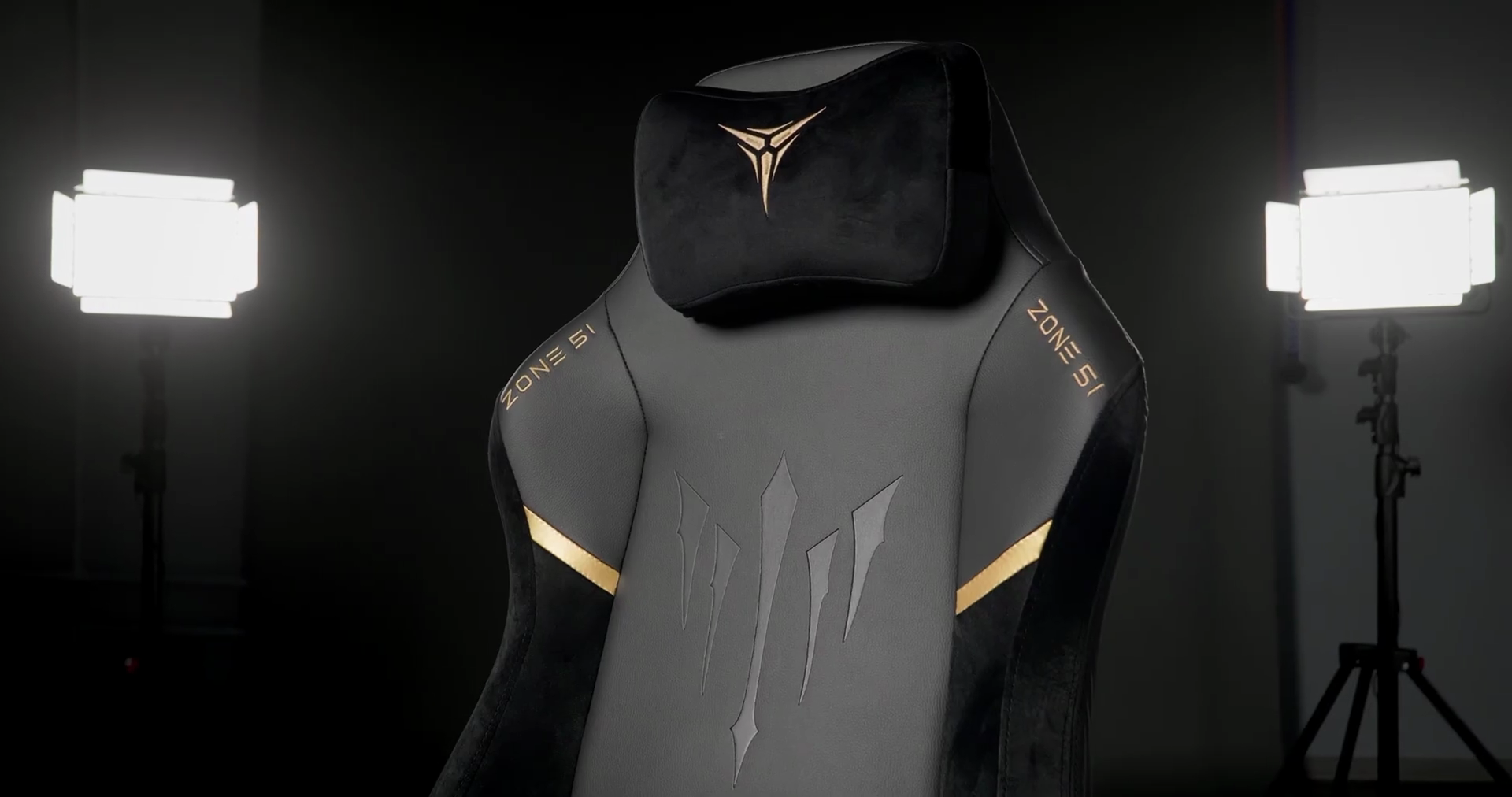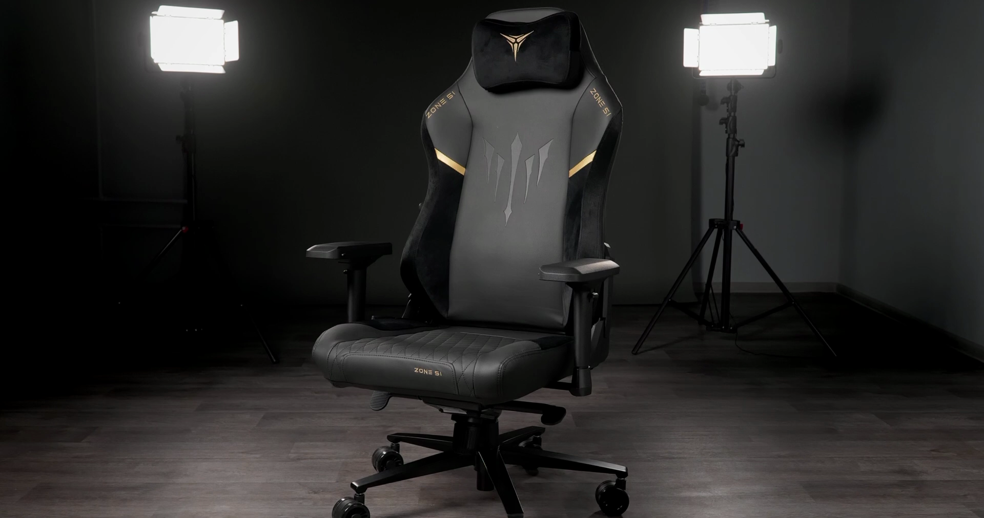 Почему кресло называется «Хищник»? А потому, что запас крутых и агрессивных слов, как и фантазия маркетологов — это, к сожалению, ресурс невосполняемый и конечный. Поэтому у нас есть хищные наушники, хищные клавиатуры, хищные мышки и вот теперь хищное кресло. Хотя хищного в нем чуть меньше, чем в лимитированном кресле по Cyberpunk 2077, которое тоже Zone 51 делали. Но там хотя бы дизайн был узнаваемый, а тут вот такой клыкастый тисненый логотип и чуть-чуть позолоченных элементов — видимо, с намеком на премиальность. В общем, сдержанный такой хищник. Возможно, сдержанный тысячелетиями эволюции.