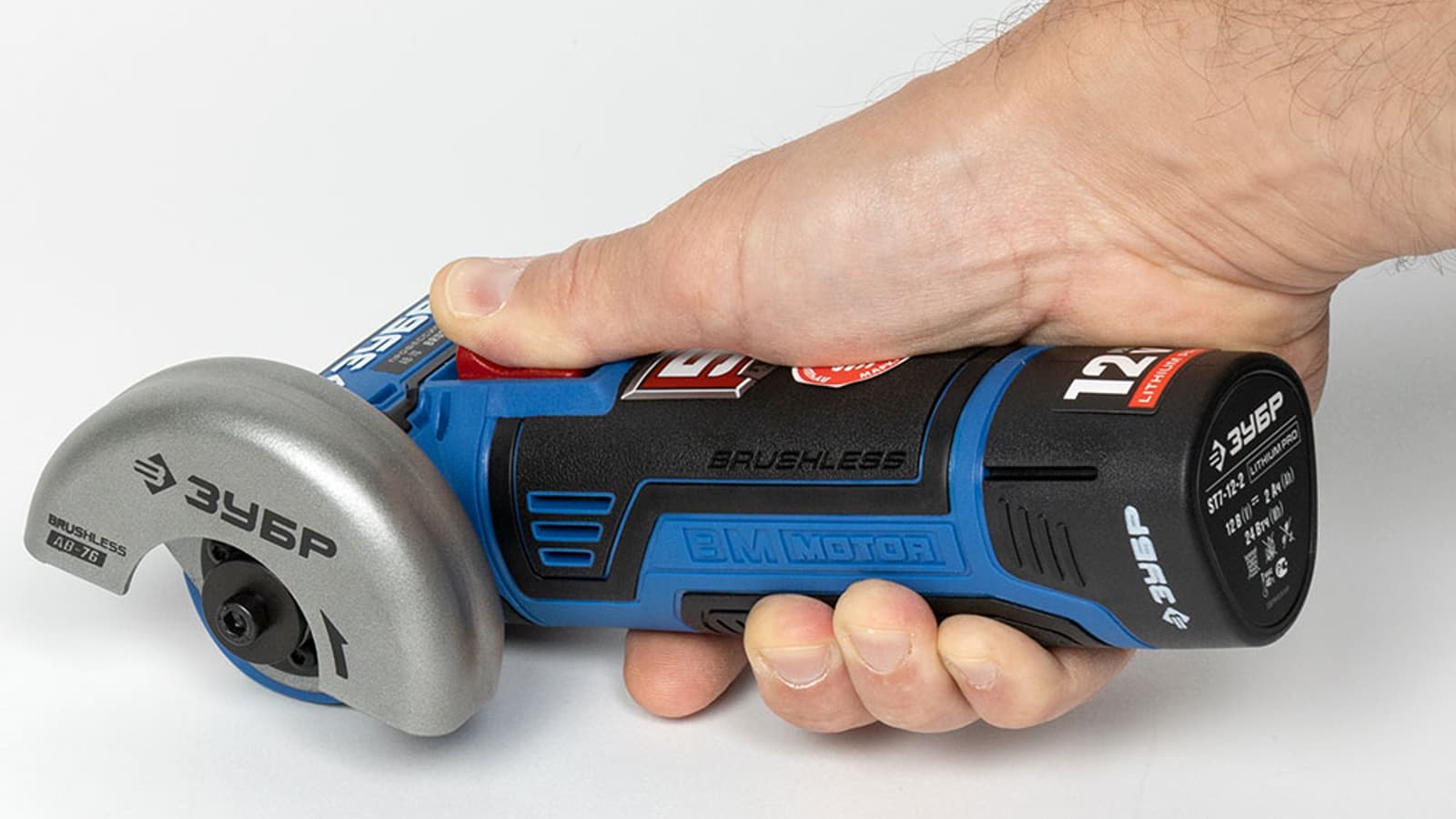 Конструкция этого мини-инструмента почти во всем повторяет дизайн стандартной полноразмерной болгарки, за исключением дополнительной рукояти: ее просто нет.