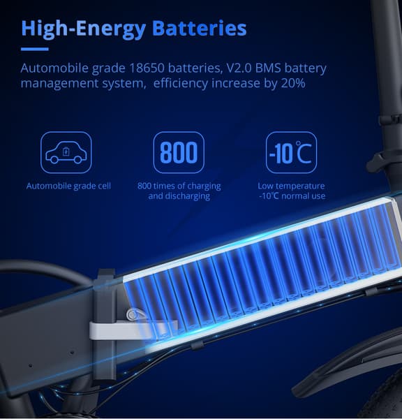 В ADO-A20 установлен емкий аккумулятор автомобильного уровня, а технология рекуперации энергии ADO G-DRIVE позволяет его подзаряжать. Больше не нужно думать, что вы вдали от источников электропитания – одной зарядки аккумулятора хватает на 50-60 км пути, а при кручении педалей – можно проехать и 80-100 км. При этом развиваемая электробайком скорость – до 35 км/ч.