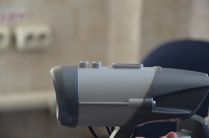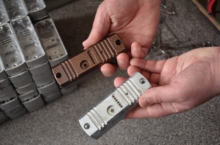 Покраска произведенных деталей производится порошковым методом здесь же. Кстати, в списке продукции завода есть не только видеорегистраторы и системы видеонаблюдения. Перед вами одна из деталей домофонов для подъездов российских домов.
