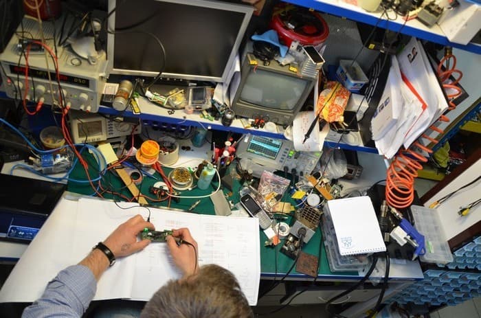 На столе инженера лежит схема американского процессора Ambarella: в данный момент проводятся замеры параметров одной из будущих моделей AdvoCam. Конечно, рабочий беспорядок наблюдается далеко не везде – в зависимости от специфики сотрудника, ему может хватать и компьютера для расчетов и моделирования.
