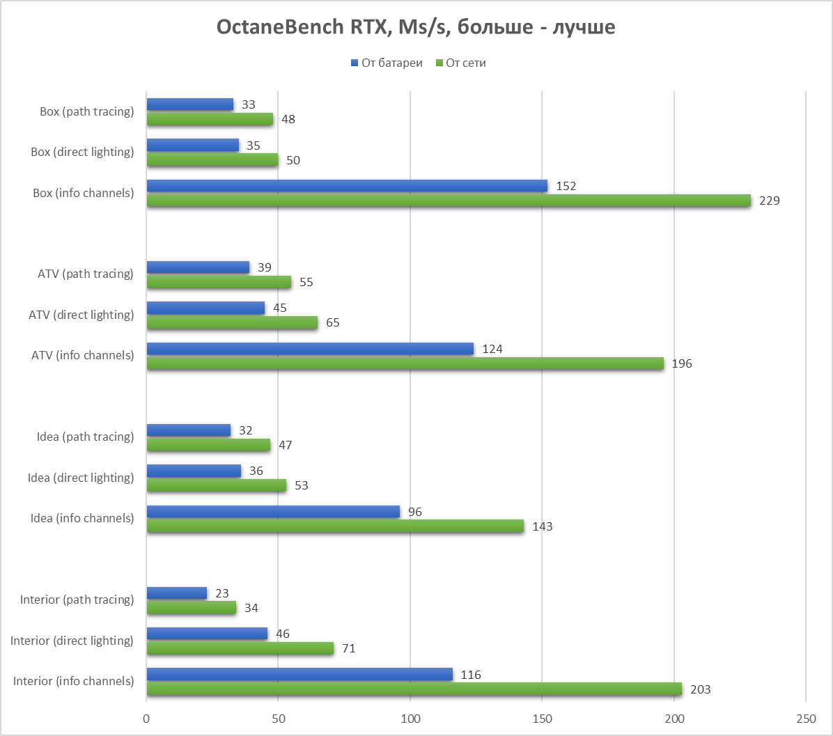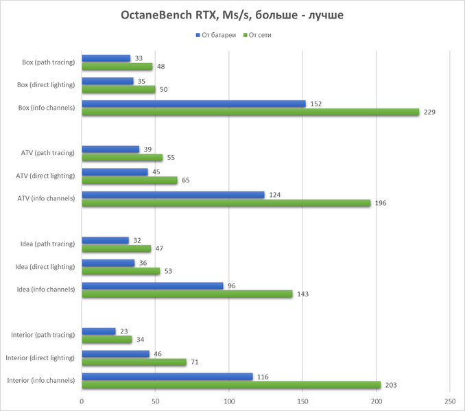 Теперь пробежимся по нескольким бенчмаркам профессионального ПО. Тестирование проведём также в двух режимах – при подключении к сети и от встроенного аккумулятора. Во всех случаях – чем выше результаты, тем выше рейтинг ноутбука.