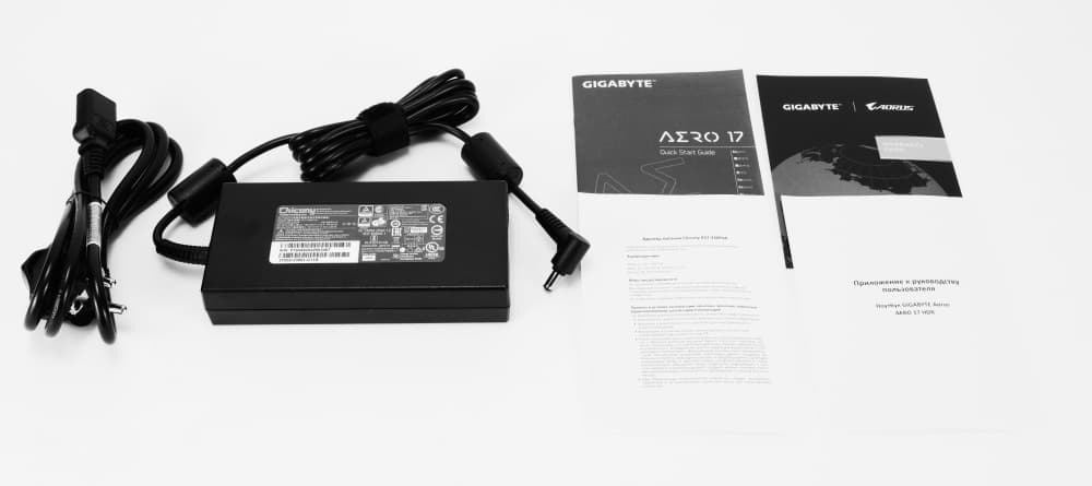 Однако, пора переходить к знакомству с предметом изучения на практике. Поставляется Aero 17 HDR в достаточно большой коробке. Это обусловлено не только размерами ноутбука и его внешнего блока питания, но и запасом свободного пространства внутри коробки для безопасности при транспортировке. Внутри находится Руководство пользователя, информацию о блоке питания, сам блок питания и силовой кабель. Блок питания A17-230P1A мощностью 230 Вт произведён компанией Chicony (напряжение на выходе 19,5 В при номинальной силе тока 11,8 А). К слову, это также является ответом на некоторые вопросы о «набивке» ноутбука – этот блок питания должен обеспечить работу видеокарты, процессора, памяти и дисков, компонентов материнской платы, дисплея, клавиатуры и иной периферии (без собственного блока питания), которую пользователь планирует подключать к ноутбуку. Хотели настоящую RTX 3080 в ноутбуке? Это было бы совершенно другое устройство не только с точки зрения габаритов его самого, но и блока питания и его мощности. На данный момент мобильные версии RTX 3070/3080 основаны на базе графического процессора GA104 в разных его вариантах. Этот же графический процессор служит основой для настольных моделей – RTX 3060 Ti и RTX 3070.